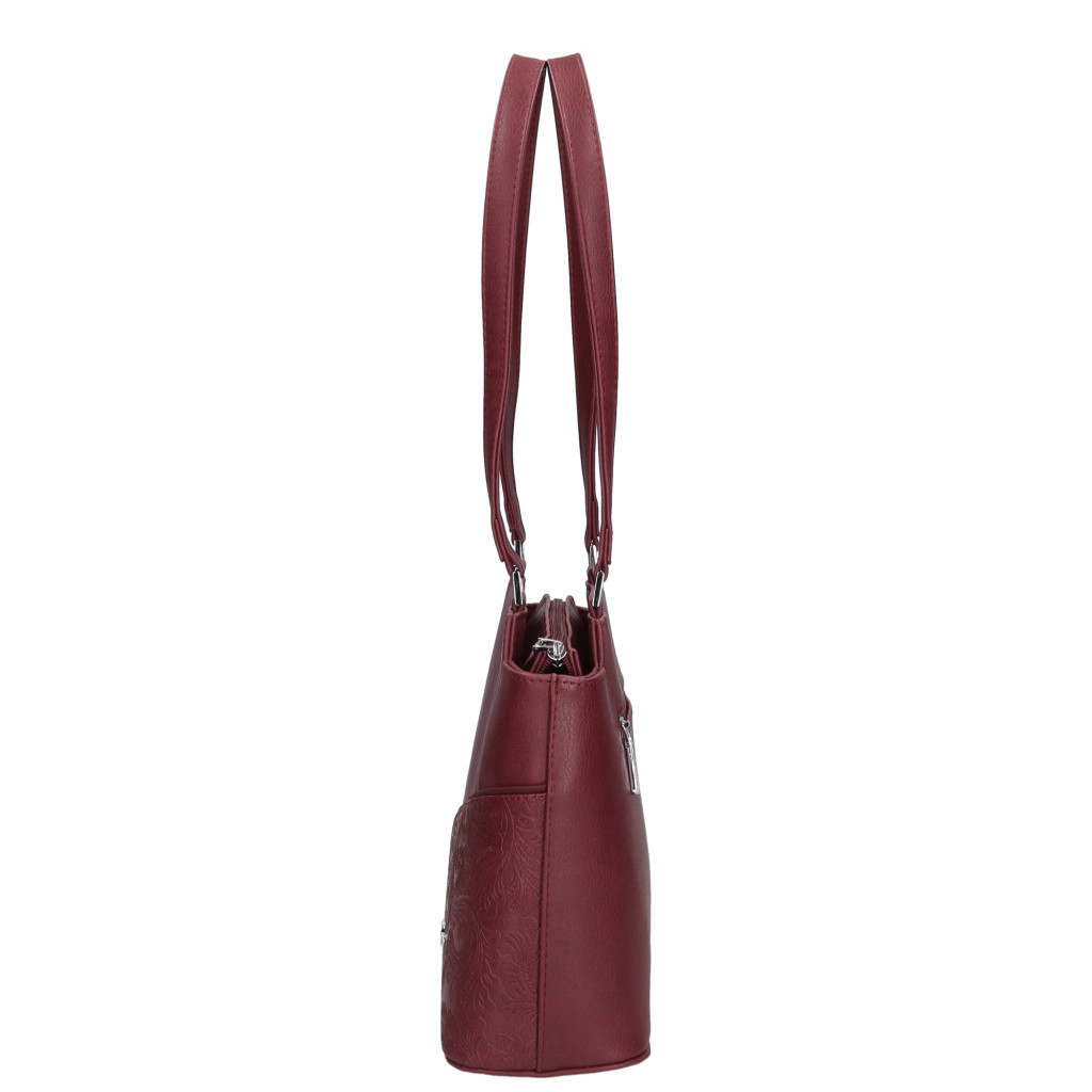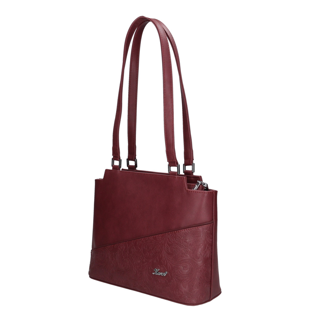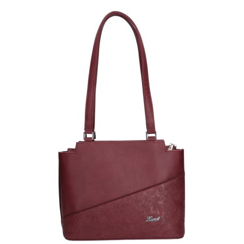 Karen rostbőr női válltáskaelegáns fazoncipzáras fő rekeszbelül osztottcipzáras elválasztóvalbelül cipzáras zseb és mobiltartóhátulján cipzáras zsebalján fém védőtalpakvállpántja: 65 cmSzé:30x Ma:24x Mé:11 cm