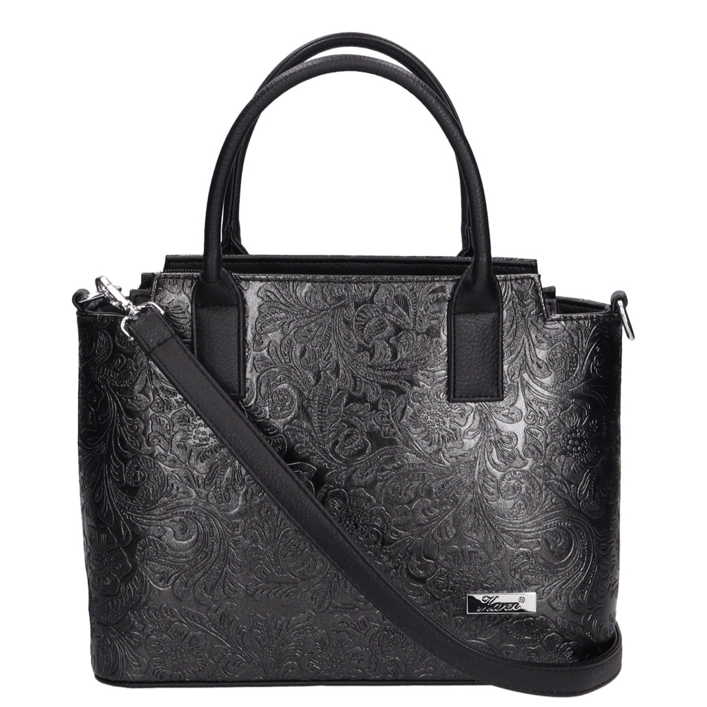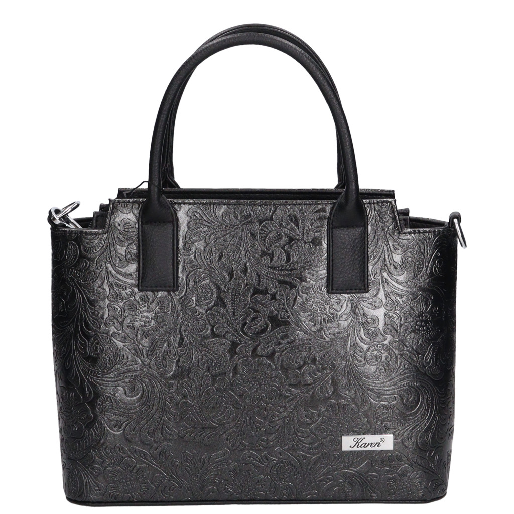 KAREN rostbőr női táskacipzáras fő rekeszbelül osztottbelül cipzáras zseb és mobiltartóhátulján cipzáras zsebkézben és vállon hordhatókézbe fogója 35 cm vállpántja lecsatolható állítható 65-125 cmalján fém védőtalpakSzé:32x Ma:24x Mé:11,5cm