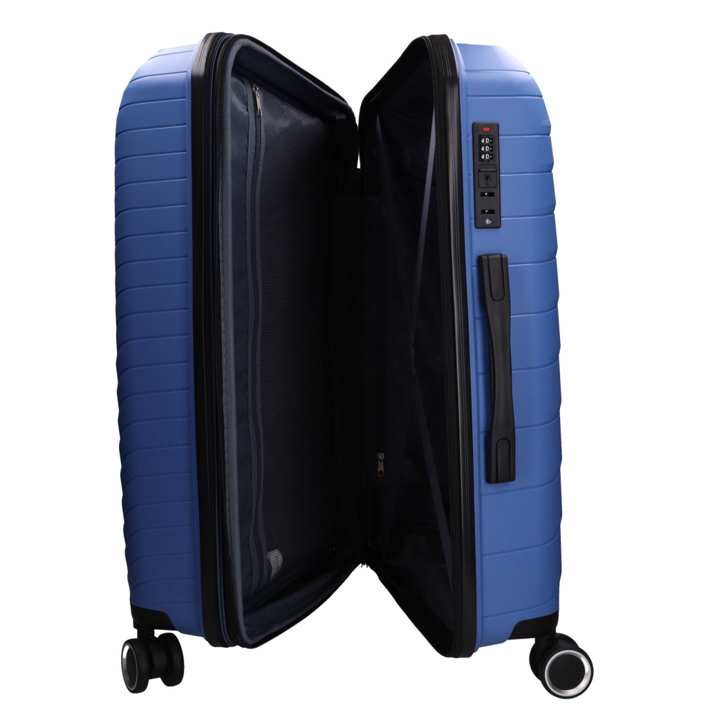 Benzi nagy méretű bőröndtöbb hetes utazáshoz360 fokban finoman gördülő dupla kerekes, négykerekűháromjegyű számzárasbelül cipzáras térelválasztóállítható belső keresztpántokkis kézi fogantyú és teleszkópos, kétállásos húzókartetején és oldalán fix kézbefogó fogantyúSzé: 47 x Ma: 75 x Mé: 29 cm
