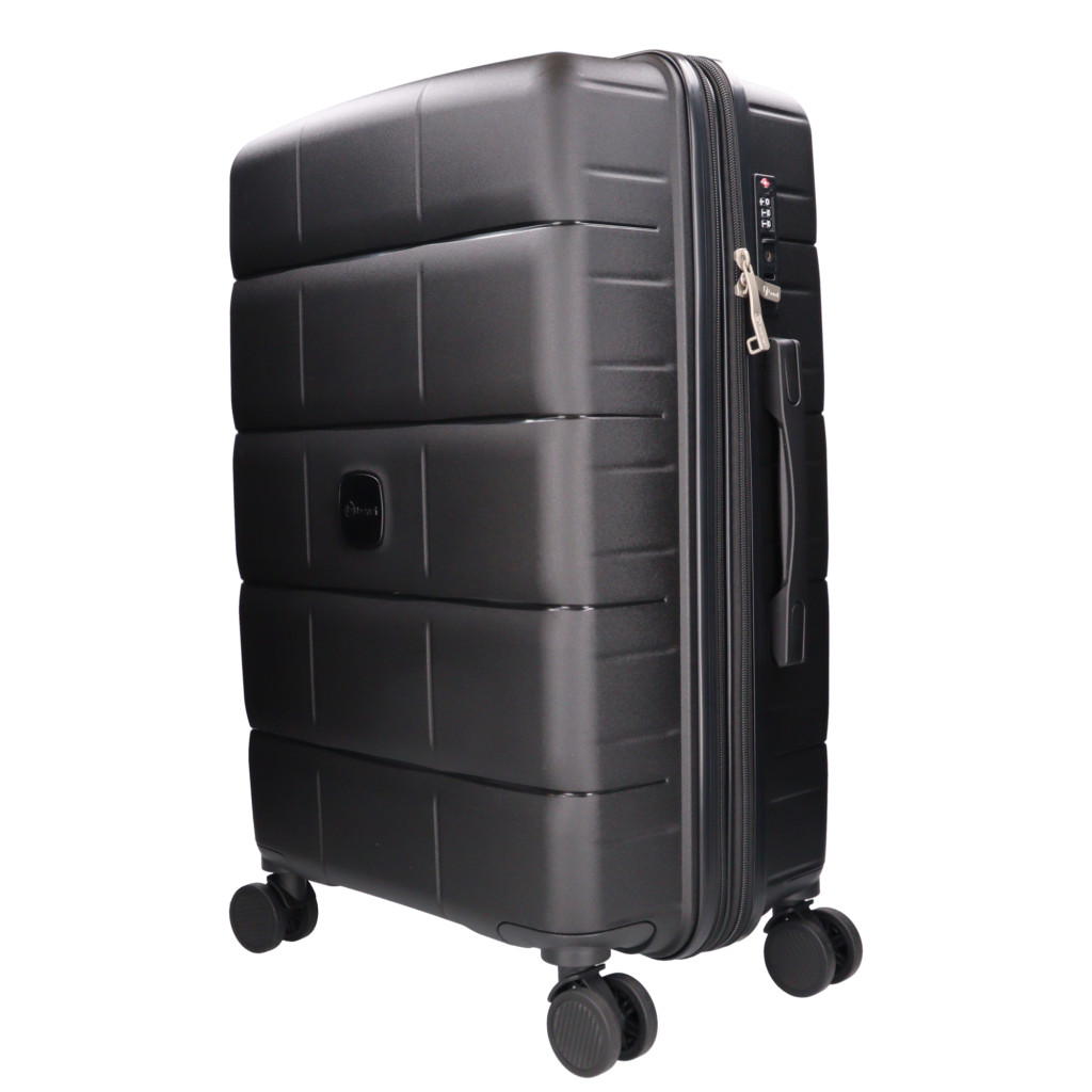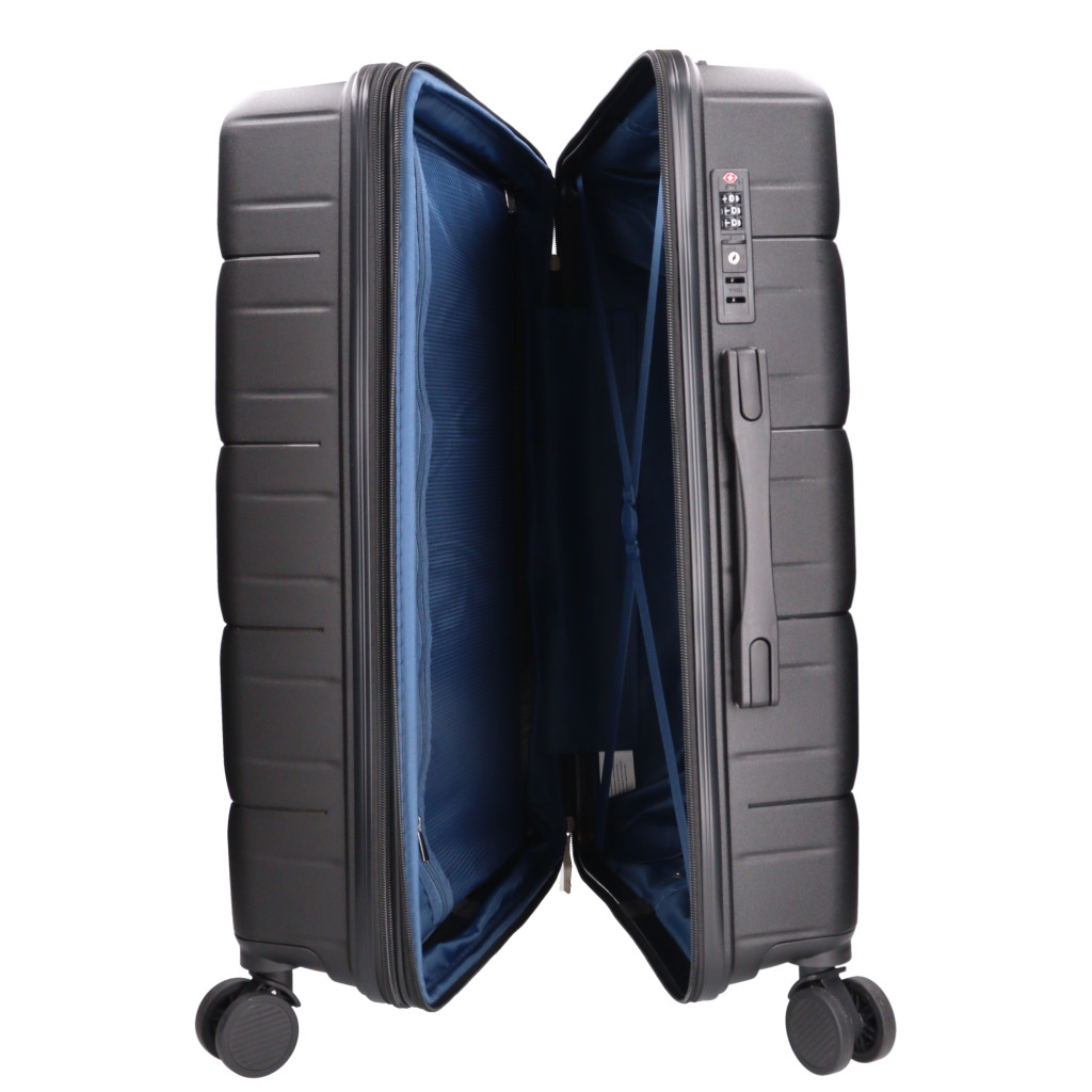 Benzi közepes méretű bőröndegy hetes utazáshoz360 fokban finoman gördülő dupla kerekes, négykerekűháromjegyű számzárasbelül cipzáras térelválasztóállítható belső keresztpántokkis kézi fogantyú és teleszkópos, kétállásos húzókartetején és oldalán fix kézbefogó fogantyúSzé: 44 x Ma: 65 x Mé: 25 cm
