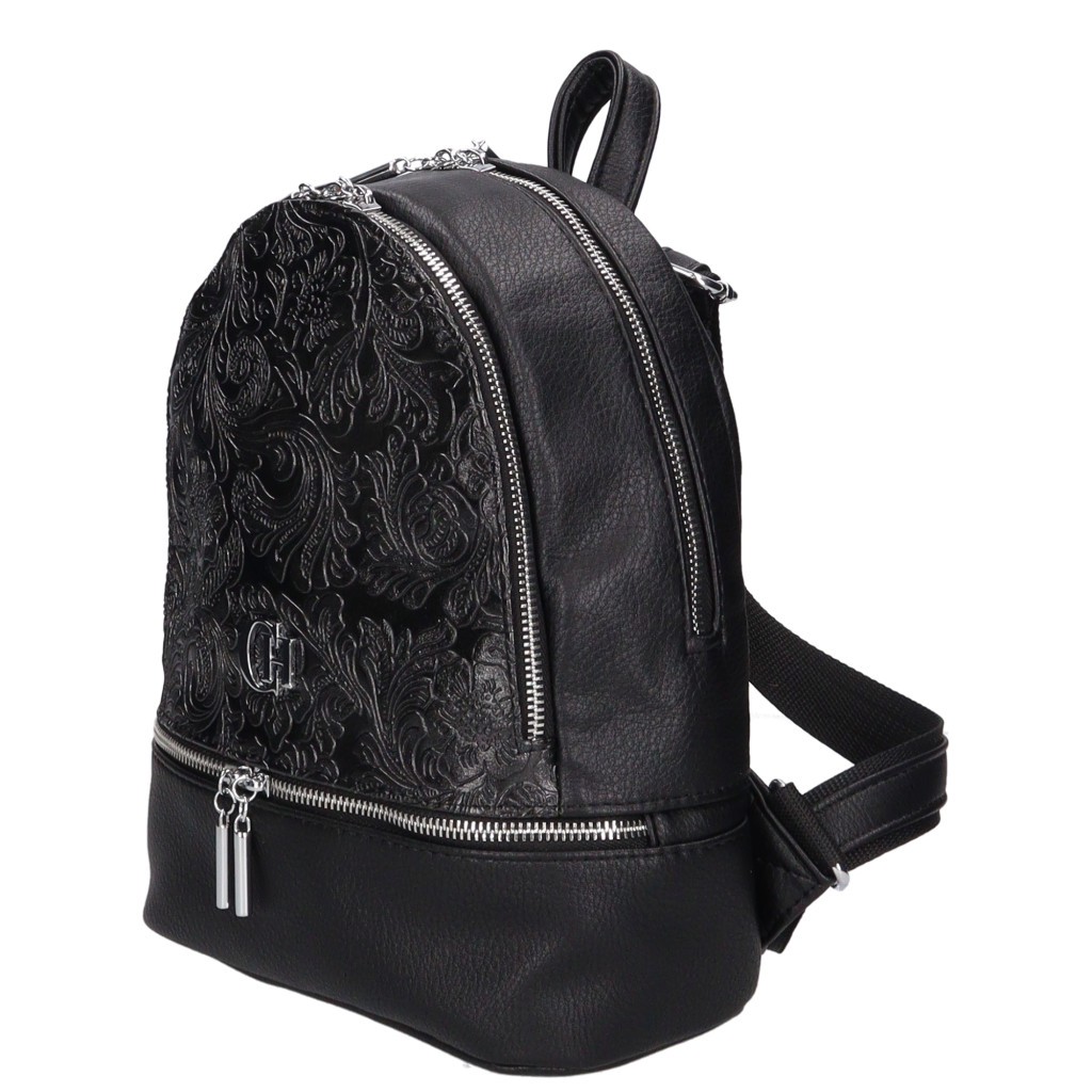 Chiara rostbőr hátitáskaelején cipzáras díszzsebtetején cipzáras zsebcipzáras fő rekeszbelseje egyterűbelül cipáras zseb és mobiltartó hátul cipzáras zsebalján fém védőtalpakvállpántja állíthatóSzé:22x Ma:27x Mé:9 cm