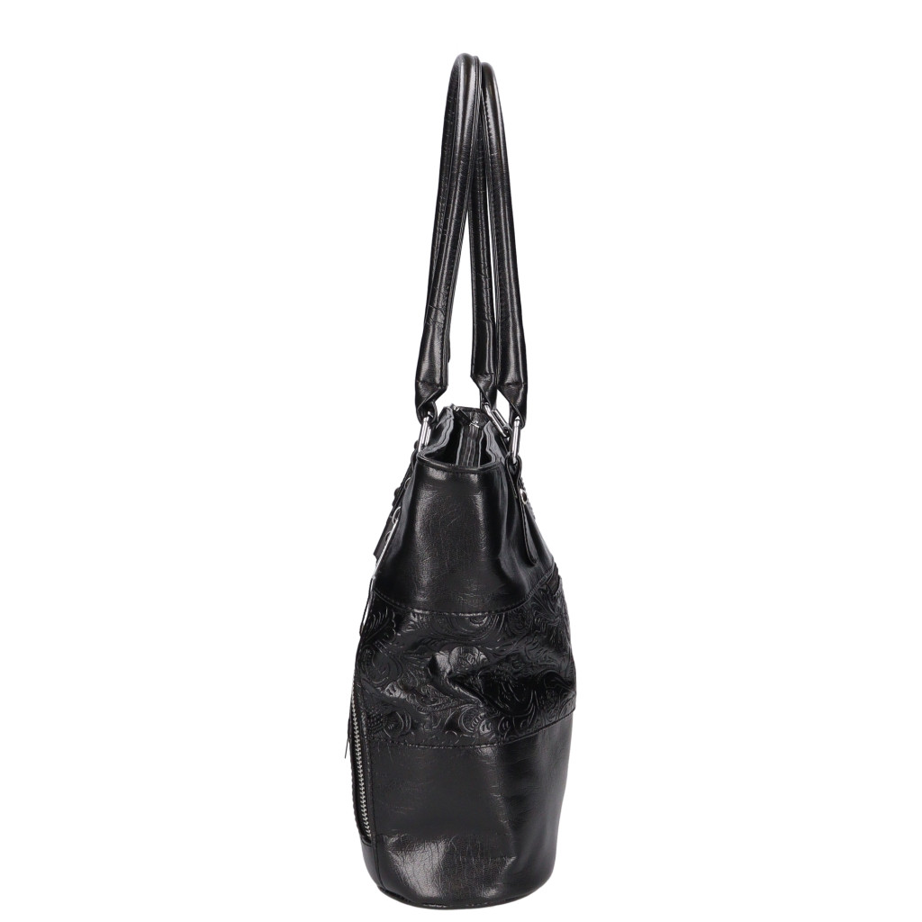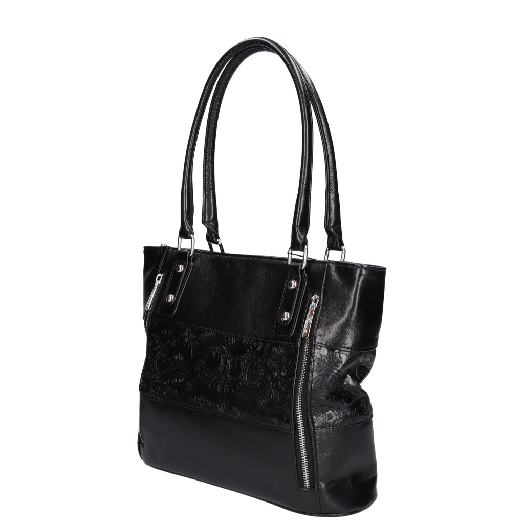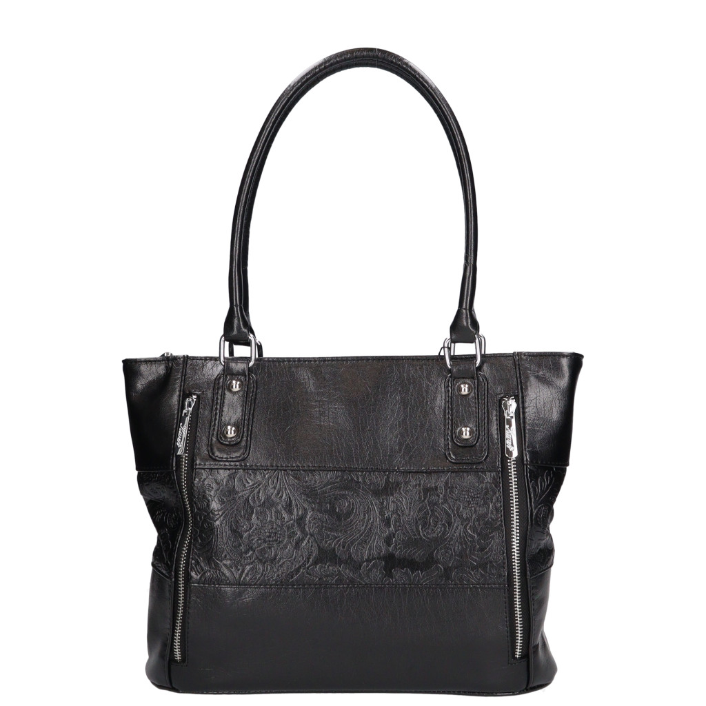 Karen rostbőr női válltáskaközepes méretű elején két dísz cipzárhátulján cipzáros zsebbelseje két rekeszesközépen cipzáros elválasztómobiltartó és belső zsebtextil bélésvállpánt 55 cmSzé:38x Ma:27x Mé:11 cm