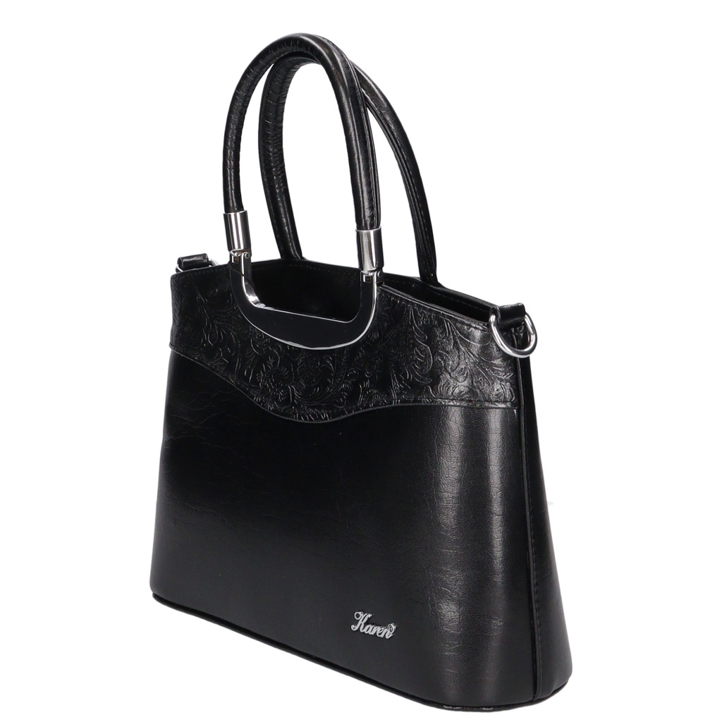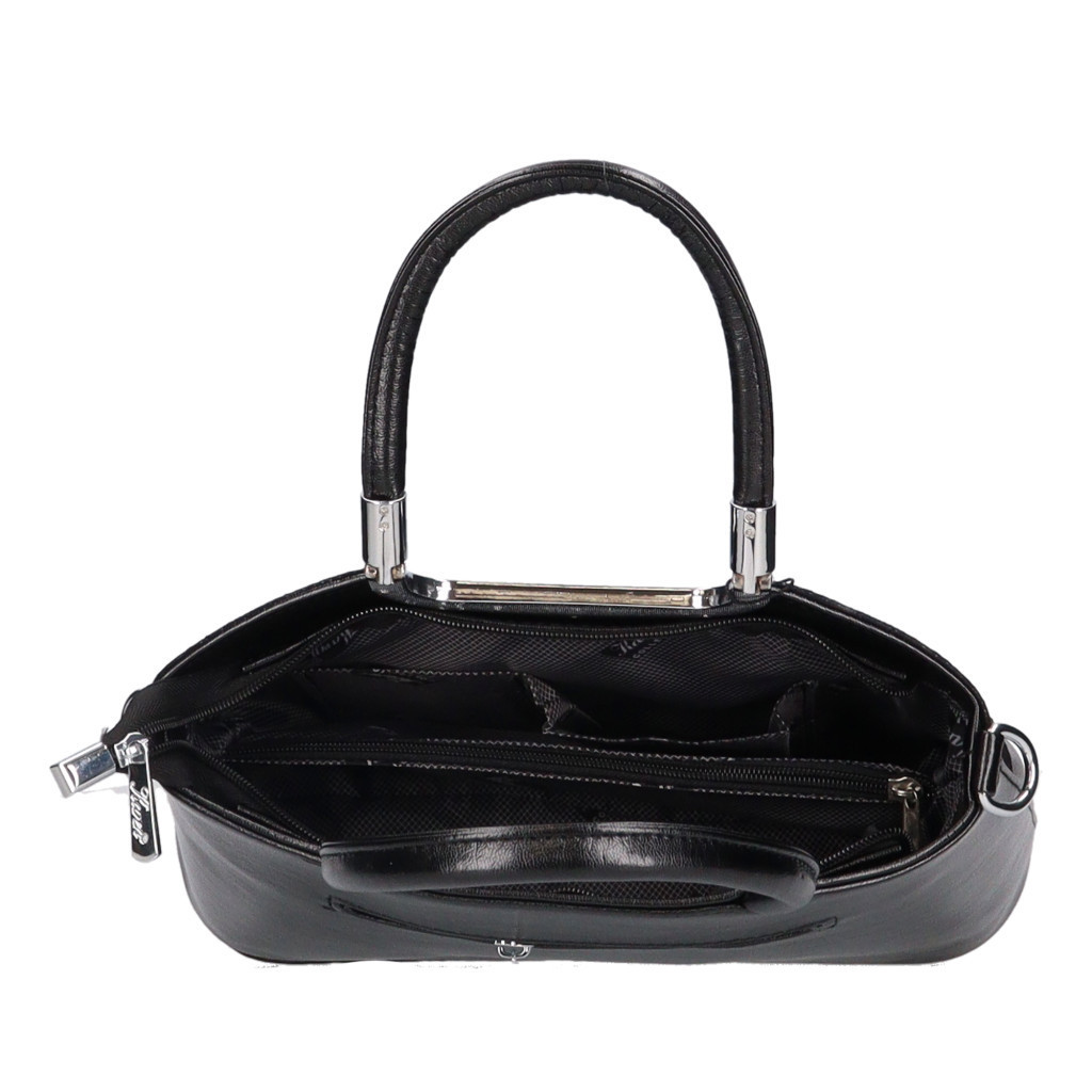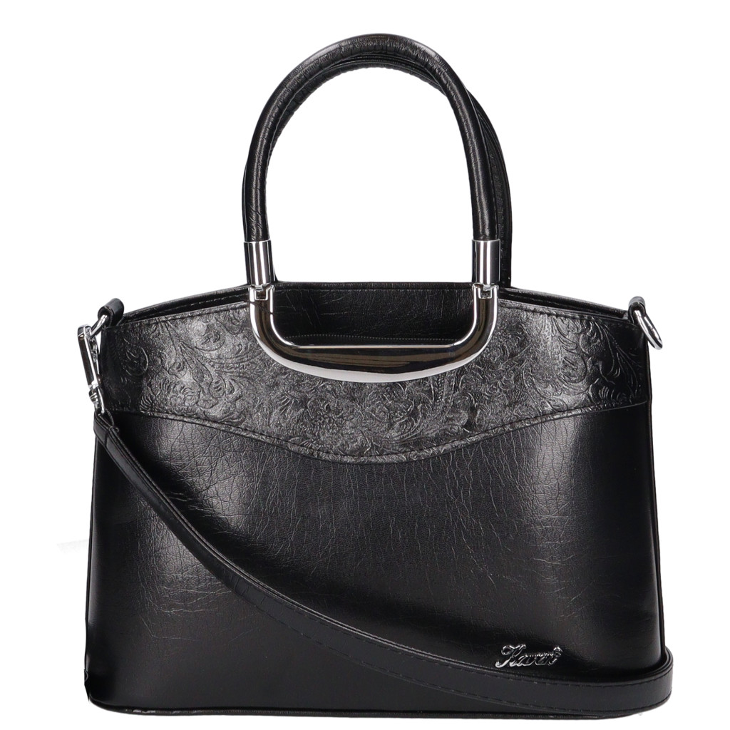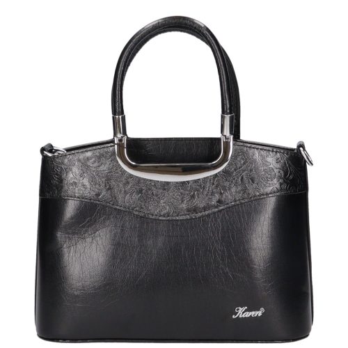 Karen rostbőr női kézi táskaelegáns kicsi fazonkézi fogóján szép fém kellékelején elegáns íves betéthátulján cipzáras zsebkomfortos belsőbelül kétrekeszesközépen cipzáras elválasztótáska alján fém védőtalpakA4-es méretnél kisebbkézbe fogója 35 cmvállpántja 60-100 cmSzé:31x Ma:22x Mé:10cm